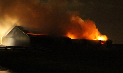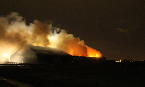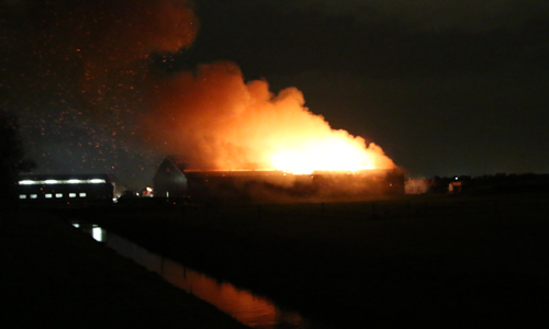 Maasland – Maandagavond werden de hulpdiensten massaal gealarmeerd voor een gebouwbrand op de Kwakelweg in Maasland. Enkele minuten na de eerste alarmering werd er opgeschaald naar ”middelbrand” en later zelfs naar ”Zeer grote brand”. Ter plaatste staat er een grote hooischuur in de brand. Een paardenstal die naast de brand staat is niet bij de brand betrokken. De Kwakelweg is geheel afgesloten voor het verkeer. De oorzaak van de brand is niet bekend, en zal op een later moment worden onderzocht. De brandweer is nog enige tijd bezig met het nablussen van de brand.