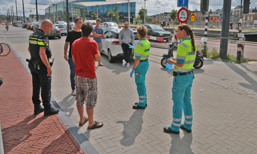 Delft – Zondagmiddag 20 augustus heeft er op de Westvest bij de oversteekplaats van het station richting het centrum een aanrijding plaatsgevonden tussen een scooterrijder en een automobilist. De scooterrijder kwam door de klap ten val. Ambulancedienst en de politie kwamen met spoed ter plaatse. De scooterrijder had lichte verwondingen aan zijn arm en is in de ambulance nagekeken. Deze hoefde na controle niet vervoerd te worden. De politie heeft samen met beide partijen de schadeformulieren ingevuld.