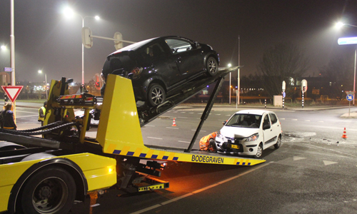 Waddinxveen- Dinsdagavond heeft er een aanrijding plaatsgevonden tussen twee voertuigen op de Kanaaldijk in kruising met de Apollolaan in Waddinxveen. Ter plaatse bleek er een aanrijding te zijn gebeurd tussen twee voertuigen. De gealarmeerde ambulancedienst is uiteindelijk met onverrichte zaken retour gegaan. De aanrijding had precies plaatsgevonden midden op het kruispunt, waardoor het overige verkeer er flinke hinder van ondervond. Bergingsbedrijf BCU heeft beide voertuigen geboren waarna de schadeformulieren konden worden ingevuld. Hoe het ongeval heeft kunnen gebeuren is echter niet bekend.