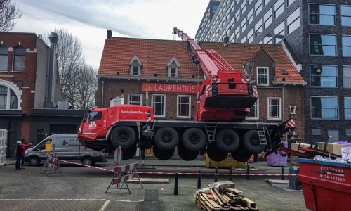 Rotterdam – Een grote hijskraan is dinsdagochtend omgevallen en door het dak van een gebouw aan de Infirmeriestraat gegaan. Het gaat om het gebouw van studentenvereniging Laurentius. Bij het ongeval raakte niemand gewond. Het bedrijf van de hijskraan stuurt een nieuwe hijskraan om het gevaarte weer overeind te krijgen. De hulpdiensten staan standby en hebben de omgeving deels afgesloten.
