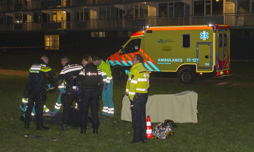 Een omstander die door het P.D. (Plaats Delict) liep en weigerde weg te gaan is door de politie aangehouden en overgebracht naar het politiebureau.