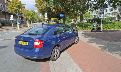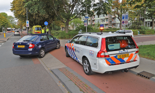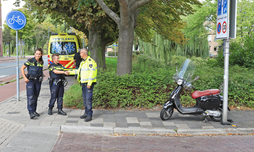 Delft – Donderdagmiddag 20 september is een meisje gewond geraakt na een aanrijding met een politie-voertuig van de recherche. Het politie-voertuig wilde de Jacoba van Beierenlaan inslaan toen deze de scooterrijdster over het hoofd zag. De scooterrijdster schampte de auto en raakte hard ten val. Een ambulance kwam ter plaatse voor de gewonde bestuurster. De verkeerspolitie heeft foto’s gemaakt voor het onderzoek. De scooterrijdster is op advies van de ambulancedienst met eigen vervoer langs de eerste hulp gegaan.