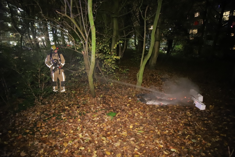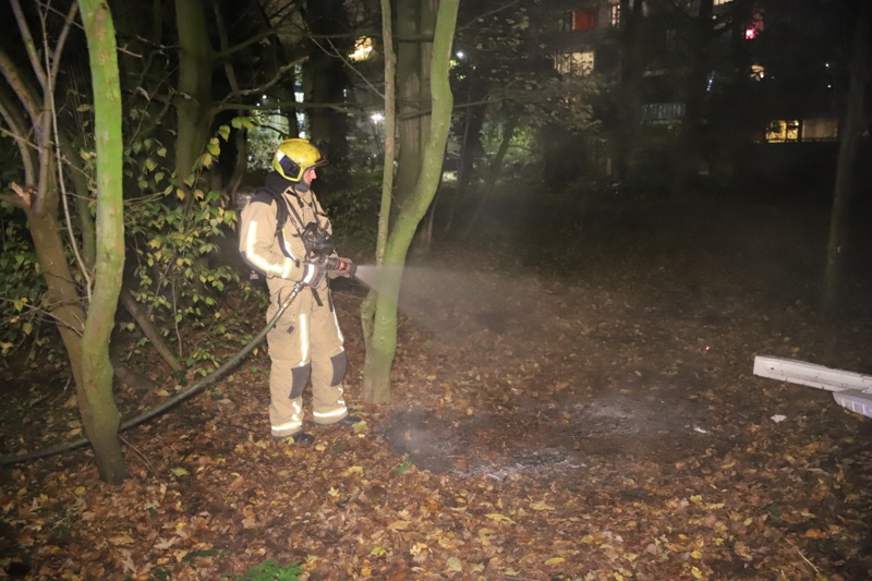 Delft – Woensdagavond 2 december kwam er op de meldkamer een melding binnen van een ‘voertuigbrand’ in een parkje langs de Haydnlaan in Delft.