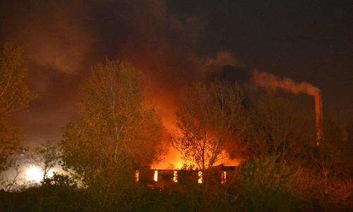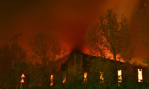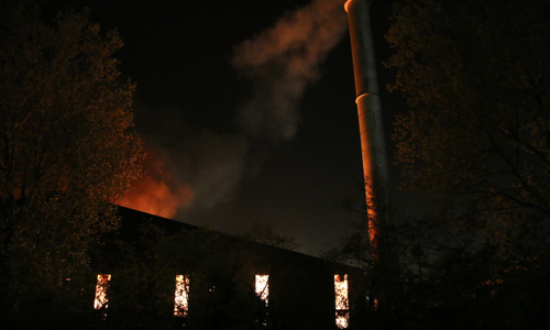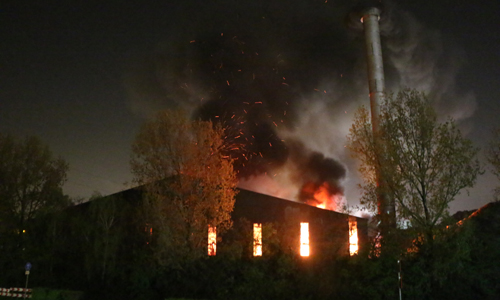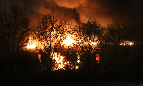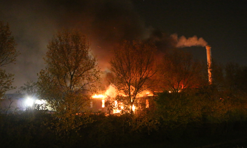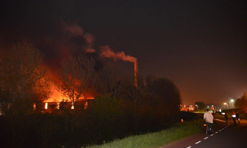 De brandweer was nog urenlang bezig met de blus en sloop werkzaamheden.
