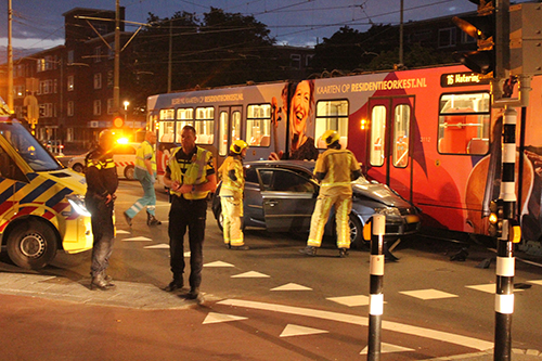 Home Den Haag 21 augustus Gewonde na flinke aanrijding tussen auto en tram Goeverneurlaan Den...