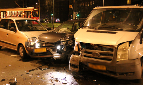 Den Haag – Op de kruising Erasmusweg met de Loevesteinlaan in Den Haag heeft vrijdagavond een flinke aanrijding plaatsgevonden tussen drie auto’s. Voor het ongeval werden twee ambulances en de brandweer opgeroepen. Twee personen raakte gewond. Een slachtoffer aan zijn knie en een andere aan haar arm. Door de aanrijding is de kruising deels afgesloten. De oorzaak van de aanrijding is niet bekend. Een automobilist komend vanaf de Schaapweg ramde twee auto’s komend vanaf Erasmusweg. Alle drie de auto’s raakte dusdanig beschadigd dat een berger deze moet komen afslepen.