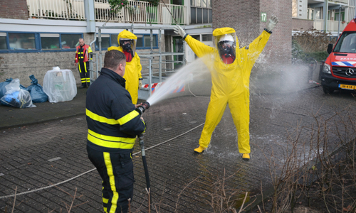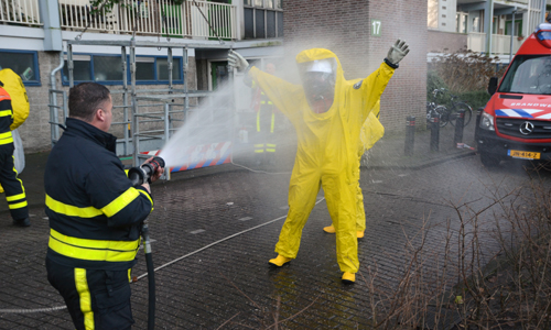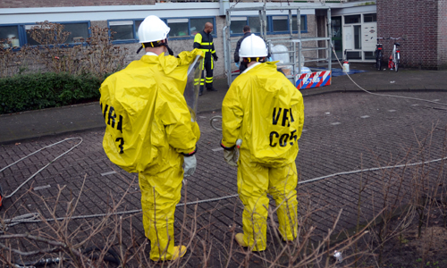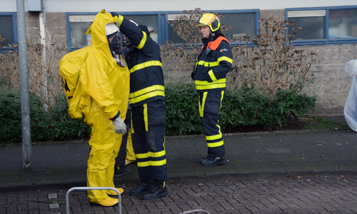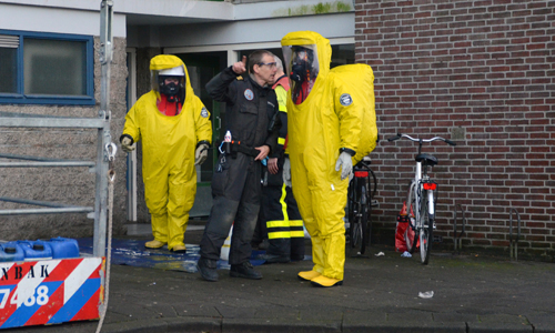 Leidschendam – Woensdagavond 21 december is de brandweer rond kwart over elf gealarmeerd na een melding van een vreemde lucht in een flat aan de Burgemeester Velthuijsenlaan. Een bewoonster van de eerste verdieping rook een lucht die hoofdpijn veroorzaakte en bedwelmend was. Ter plaatse gekomen agenten riepen de hulp in van de brandweer die een onderzoek startte naar de herkomst van de lucht. Brandweermannen die op de vijfde etage van de flat bij een woning kwamen kregen plotseling ook hoofdpijnklachten toen de geur erg sterk was. Daarop is besloten de adviseur gevaarlijke stoffen te alarmeren en de burgemeester wakker te bellen. Ondertussen is één brandweerman met ademlucht de woning binnengegaan nadat de voordeur geforceerd was. Binnen bleek niemand meer aanwezig te zijn, maar de woning stond wel vol met grote vaten. Hierop is meteen teruggetrokken uit de woning en is besloten een groot deel van de flat te evacueren in verband met het mogelijke gevaar. Zo’n vijftien bewoners zijn om de hoek opgevangen. Een ambulance heeft voor hen en de overige hulpdiensten stand-by gestaan. Ook de Burgemeester Kolfschotenlaan is afgesloten voor al het verkeer in verband met alle hulpverleningsvoertuigen op de weg. Specialisten van het LFO, de Landelijke Faciliteit Ontmantelen, zijn ter plaatse gegaan om onderzoek te doen en uiteindelijk de vaten te bergen. Hierdoor konden de geëvacueerde bewoners niet thuis slapen en zijn zij ondergebracht in een hotel.