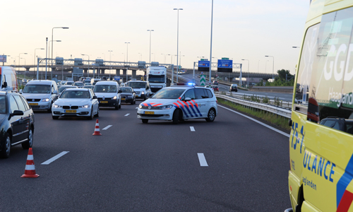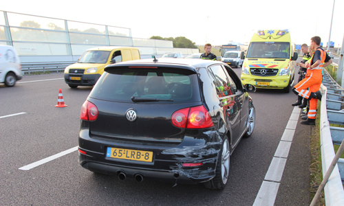 Den Haag – Op de Utrechtsebaan A12 richting het centrum van Den Haag heeft in de vroege vrijdagochtend een aanrijding plaatsgevonden. Volgens de bestuurder van het voertuig werd hij door een automobilist opzij geduwd en kwam hierbij tegen de vangrail aan. Het voertuig kwam in tegengestelde richting tot stilstaand. De bijrijder van het voertuig klaagde over pijn in zijn nek en werd door het ambulancepersoneel nagekeken. Hij hoefde niet mee naar het ziekenhuis. Een berger kwam ter plaatse om het voertuig af te slepen. De aanrijding zorgde voor een flinke file en de vertraging liep op tot meer dan twintig minuten.