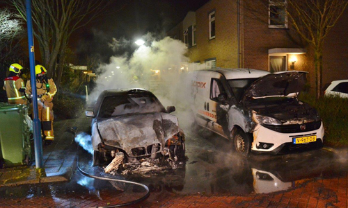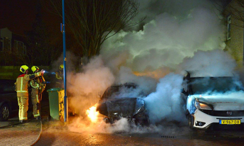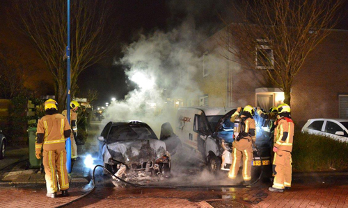 Zoetermeer – De brandweer van Zoetermeer werd dinsdag op woensdagnacht 21 maart gealarmeerd voor een voertuigbrand op het Saturnusgeel in Zoetermeer. Ter plaatse bleken er twee voertuigen in brand te staan, de brandweer die met spoed ter plaatse kwam starte meteen met bluswerkzaamheden. Ondanks de snelle inzet van de brandweer kon niet voorkomen worden dat beide voertuigen zwaarbeschadigd raakte door de brand. De politie neemt de zaak in onderzoek. Een berger heeft beide voertuigen meegenomen.