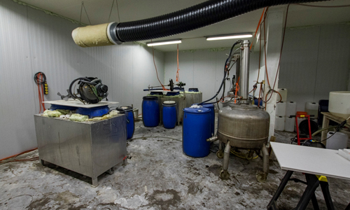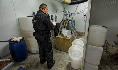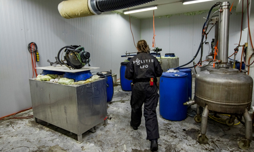De politie nam een kijkje bij het pand na een tip. Binnen werd een nog actief drugslab aangetroffen, waar mogelijk XTC wordt gemaakt. De politie zal nog geruime tijd bezig zijn met het ontmantelen van het lab.