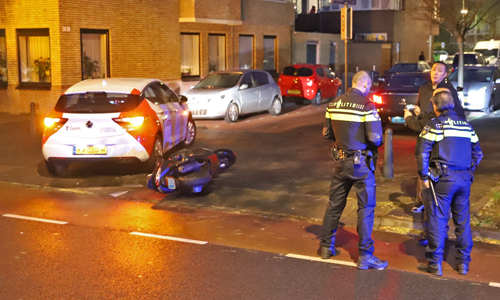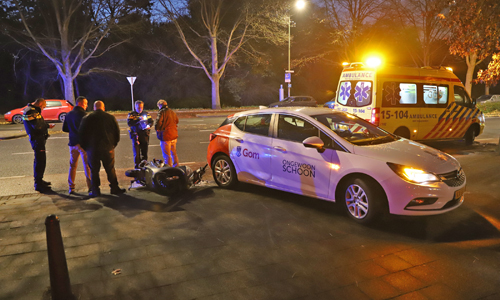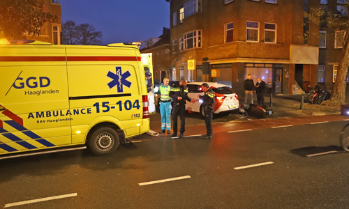 Den Haag – Woensdagochtend 21 november heeft er op de Vreeswijkstraat in Den Haag een aanrijding plaatsgevonden tussen een scooterrijder en een afslaande auto. De scooterrijder knalde in de flank van de auto, vloog van z’n scooter en belande met een harde klap op het asfalt. De ambulancedienst en de politie kwamen met spoed ter plaatse, het slachtoffer is lopend, met ondersteuning de ambulance in gegaan. De politie sloot 1 rijbaan van de Vreeswijkstraat afgesloten. Het slachtoffer is even later vervoerd naar het ziekenhuis.