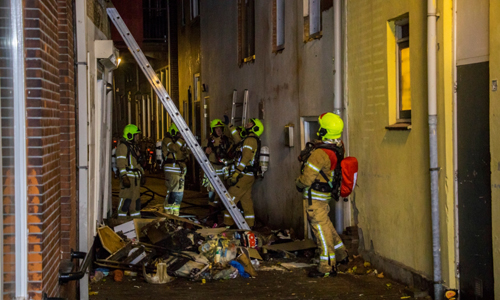 De omgeving is afgesloten en de brandweer is nog druk bezig met blussen en brandende huisraad naar buiten te gooien. Over de oorzaak van de brand is nog niets bekend.
