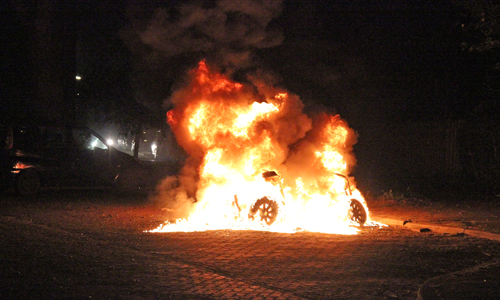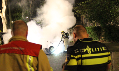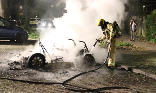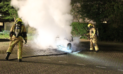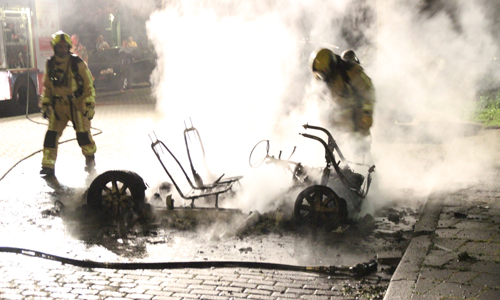 Den Haag – Aan de Riddersdreef in Den Haag is zondagavond een brommobiel in vlammen opgegaan. Het 45-km wagentje stond geparkeerd. De brandweer probeerde de brand nog te blussen, maar kon niet voorkomen dat het voertuig volledig in vlammen op ging. Er is weinig van het voertuig meer over. De politie en de brandweer gaan uit van brandstichting. Getuigen zagen kort na de brand vier personen wegrennen. Een bergingsbedrijf zal het voertuig bergen.