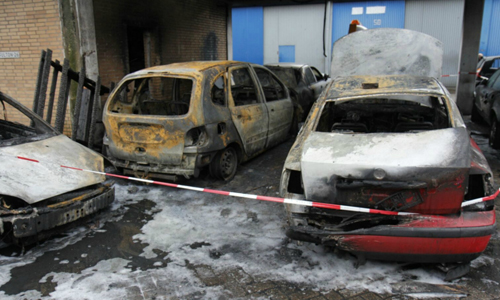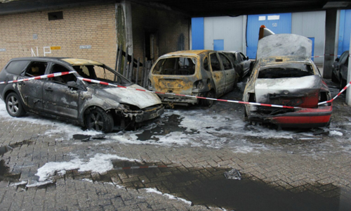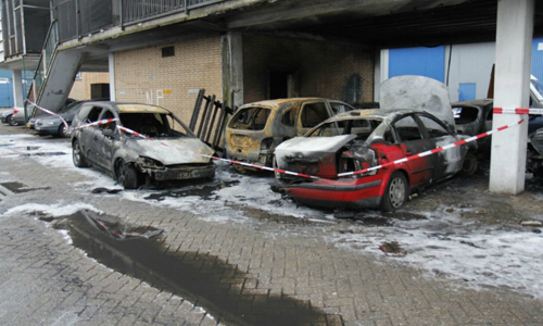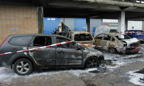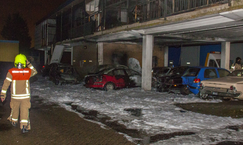 Vlaardingen – In de nacht van dinsdag op woensdag zijn zo’n vijf auto’s in brand gestoken in de Fultonstraat in Vlaardingen. Toevallig passerende werklui ontdekten de brand rond 01:10 waarna direct de brandweer werd gebeld. De auto’s stonden geparkeerd onder een gebouw. Vanwege het uitbreidingsgevaar werd er opgeschaald naar middelbrand. De brand is gedoofd met behulp van schuim. Ruim een uur na het ontdekken van de brand werd het sein brandmeester gegeven. De oorzaak van de brand niet helemaal zeker. De politie gaat uit van brandstichting, en heeft daarom een plaats delict gevormd op de locatie van de brand.