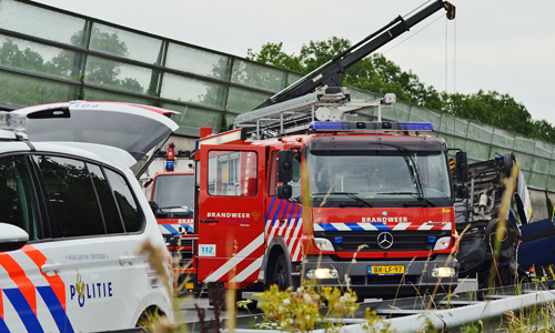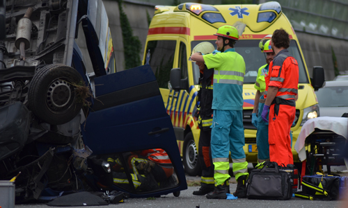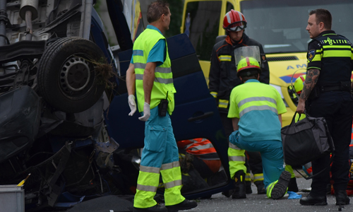 Waddinxveen – De hulpdiensten, waaronder de traumahelikopter werden zaterdagmiddag gealarmeerd voor een ongeval met beknelling op de A12 (Richting Utrecht) bij hectometerpaal 29.4 in Waddinxveen. Ter plaatse bleek er een gehandicpten-vervoersbus op zijn kop op zijn kop te liggen, met daarbij minstens één slachtoffer. Het slachtoffer, de bestuurder van het voertuig, kwam hierdoor bekneld te zitten. Vanwege de eerste van de verwondingen van het slachtoffer werd ook het MMT (Mobiel Medische Team) gealarmeerd. De traumahelikopter landde uiteindelijk op de snelweg. De brandweer is enige tijd bezig geweest met het bevrijden van het slachtoffer. Het slachtoffer is uiteindelijk met A1 (Spoed) vervoerd naar het ziekenhuis. Een gespecialiseerd bedrijf is ter plaatse gekomen om het wegdek te reinigen. Hoe het ongeval heeft kunnen gebeuren is niet bekend.