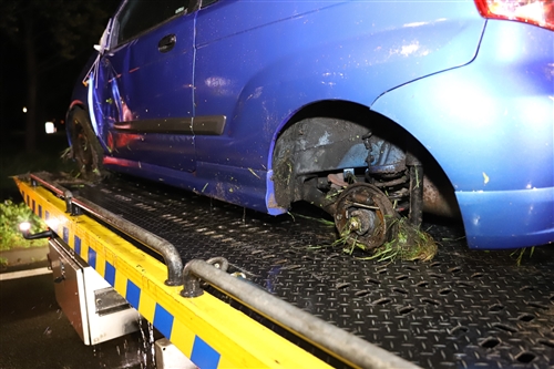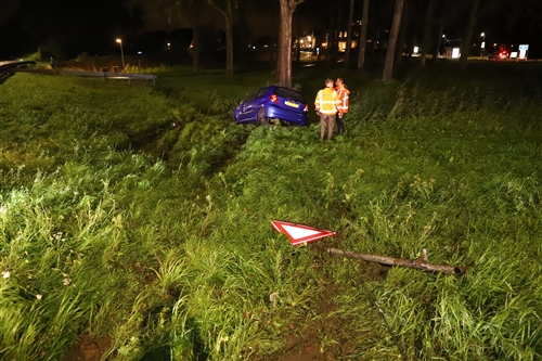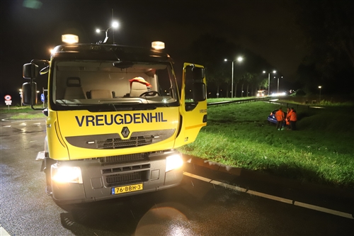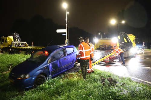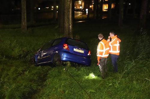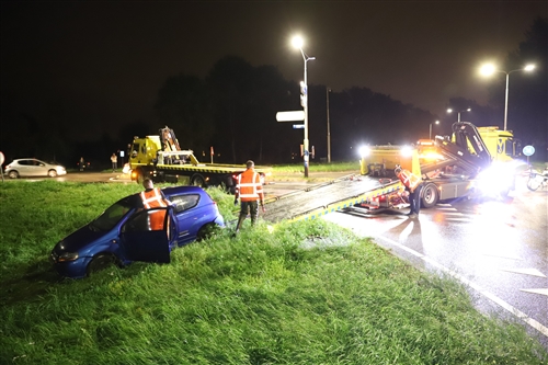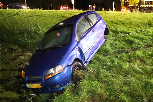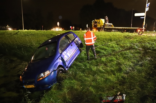 Zoeterwoude – Een automobilist is zaterdagavond langs de N206 in de sloot beland. De auto kwam vanuit Zoetermeer toen door nog onbekende oorzaak ter hoogte van de kruising met de Doctor Kortmannstraat in Zoeterwoude zijn achterwiel afbrak. De auto vloog rechtdoor, raakte een verkeersbord en kwam met de voorkant in het water terecht. Twee bergers kwamen ter plaatse om de auto uit het water te halen. De auto is hierna door de berger meegenomen. De inzittenden van de auto konden zelf uit de auto komen en raakte wonder boven wonder niet gewond. Een deel van de N206 was tijdelijk afgesloten door de bergingswerkzaamheden.