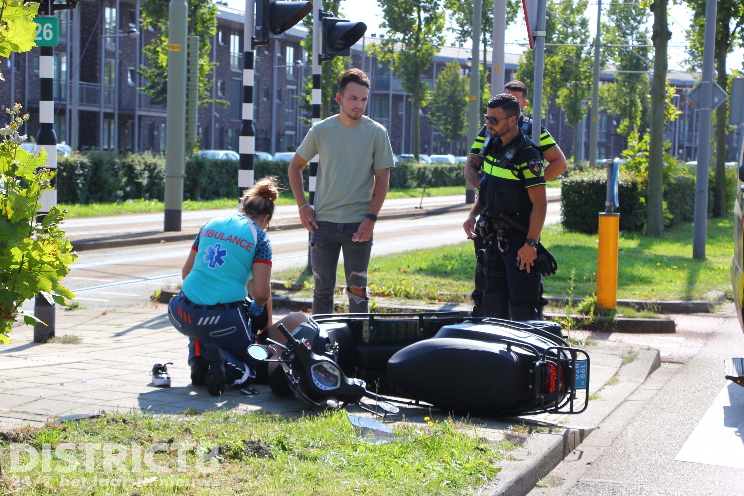 De vrouw is eerst op straat onderzocht en later op de brancard geholpen. Hierna is zij zonder spoed vervoerd naar het ziekenhuis voor verdere behandelingen.