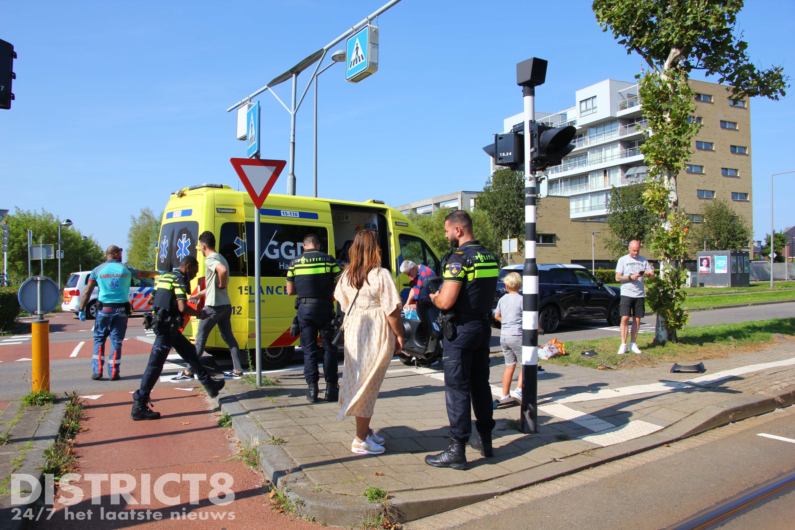 Na de botsing klaagde de vrouw over pijn. Direct werden politie en de ambulancedienst gealarmeerd.