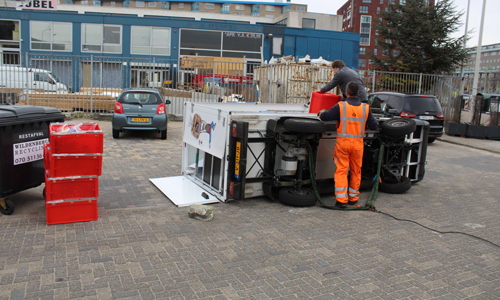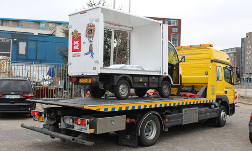 Den Haag – Voor verschillende huishoudens in Den Haag kwamen de boodschappen vrijdagmiddag iets later dan gepland. Een wagen van de online supermarkt ‘Pic Nic’ vloog deze middag in de Uitenhagestraat in Den Haag uit de bocht en kwam daarbij tot stilstand op zijn zijkant. De bestuurder kon ongedeerd zijn voertuig verlaten. De berger van Vreugdenhil kwam ter plaatse. Omdat de wagen nog vol zat met boodschappen kregen ze de wagen niet op zijn wielen. Hierdoor moesten de zware kratten met boodschappen uit de wagen worden gehaald. Nadat deze klus was geklaard kon het voertuig al snel op zijn wielen worden gezet. De berger nam de boodschappen wagen mee.