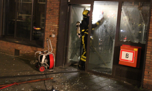 Om de brand te kunnen blussen heeft de brandweer een deel van de spouwmuur in het portiek gesloopt. In het appartementencomplex wonen onder andere personen met een verstandelijke beperking. Zij bevonden zich bij aankomst van de brandweer op de galerij die uitkomt op een binnenplaats van het complex. Vanwege het aantal bewoners en de rookontwikkeling werd kort opgeschaald naar ‘grote brand’ om extra brandweerpersoneel en -materieel ter plaats te krijgen. Gezien de brand snel onder controle was, is terug geschaald naar ‘middel brand’ en is het incident afgehandeld met twee tankautospuiten en een hoogwerker.