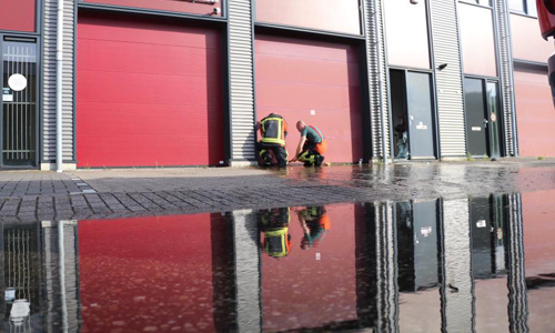 Reeuwijk – De brandweer werd dinsdagochtend gealarmeerd voor een wateroverlast aan de Jan Tinbergenstraat in Reeuwijk. De brandweer zag bij aankomst dat er een flinke hoeveelheid water onder de roldeur vandaan kwam. De brandweer was genoodzaakt om een raampje in te slaan om de oorzaak van te zoeken waar al het water vandaan kwam. Nadat de oorzaak was gevonden kon de brandweer weer inpakken en terug naar de kazerne. Hoe groot de schade in het bedrijfspand is zal worden onderzocht.