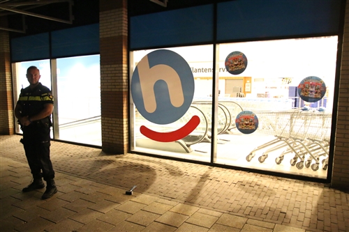De politie ontdekte dat er bij de Hoogvliet aan de Prins Johan Friso Promenade gepoogd was in te breken. Het glas van de nooduitgang deur was ingeslagen. Voor de supermarkt lag een hamer op de grond. De politie heeft de hamer in beslag genomen.