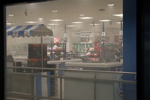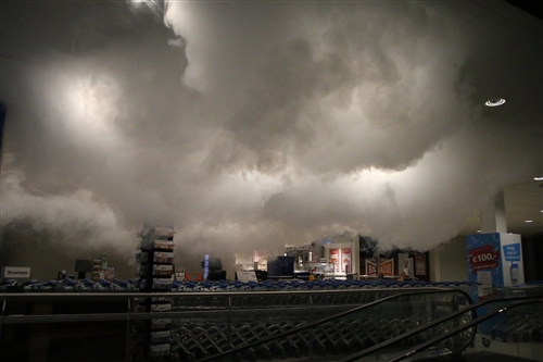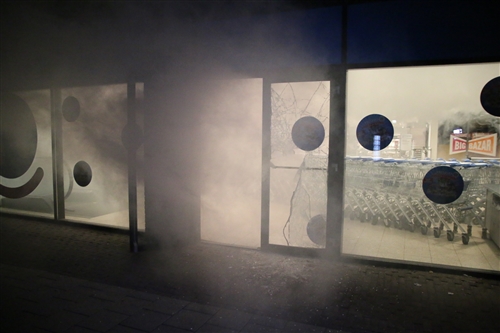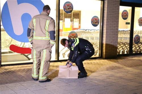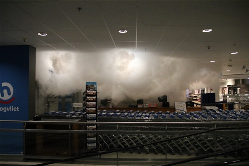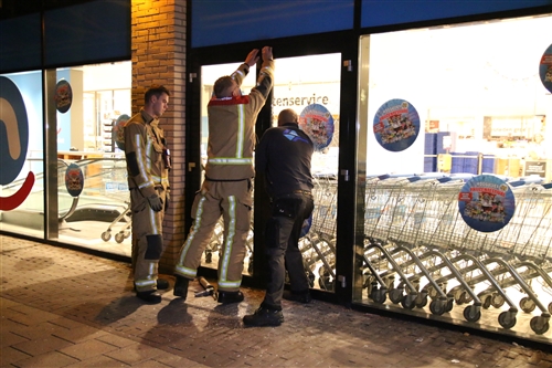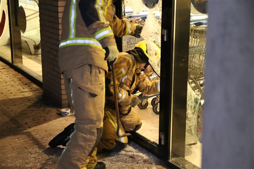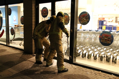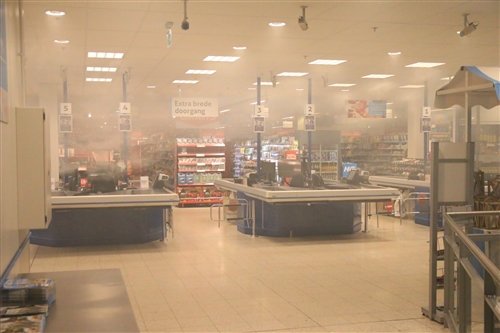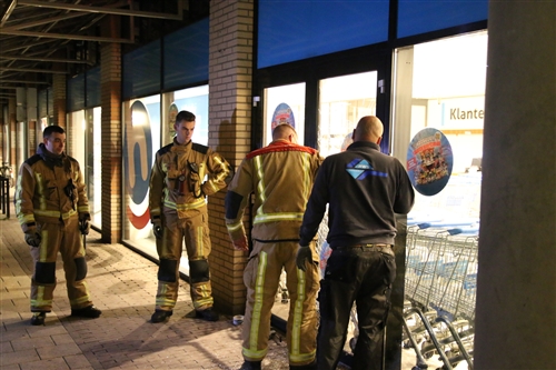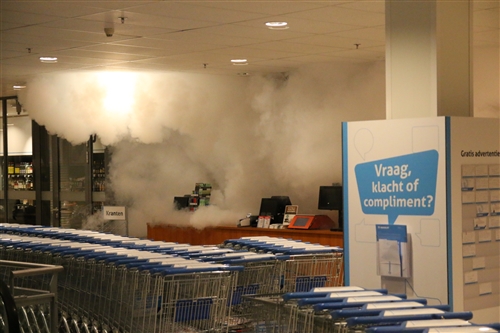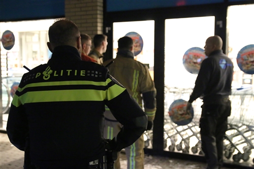 Toen de brandweer eenmaal binnen was ging het inbraakalarm af waardoor ook de rook generatoren van de supermarkt activeerden. Binnen één minuut stond de hele supermarkt vol met rook. Na volledige controle handige de brandweer alles over aan de politie.