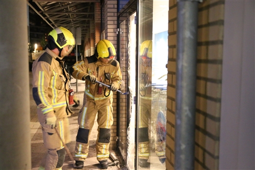 De brandweer kwam na het uitschakelen van het brandalarm ook een kijkje nemen bij de supermarkt. De brandweer wilde graag een kijkje nemen in de supermarkt om uit te zoeken of de inbraak iets te maken had met de eerder geactiveerde rook generator. Aangezien het raam al was ingeslagen heeft de brandweer het raam er volledig uitgehaald om binnen te komen.