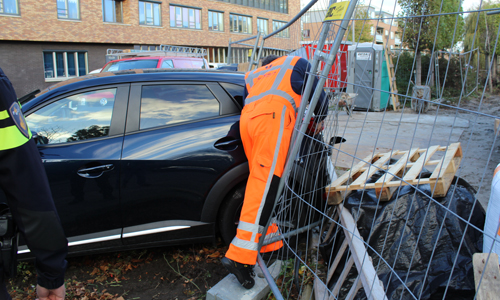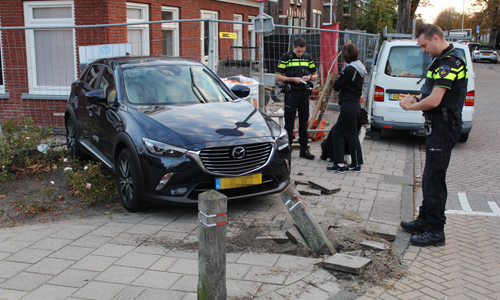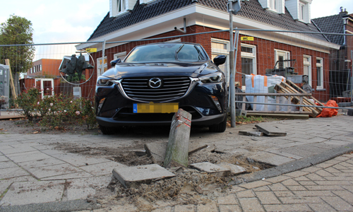 ‘s-Gravenzande – Maandagochtend 23 oktober is een oudere man met zijn auto tegen een bouwstelling op de hoek van de Hoflaan met de Van Lennepstraat gereden. De man stond geparkeerd en gaf gas om weg te rijden, toen bleek dat de auto in de verkeerde versnelling stond. De man reed achteruit over twee paaltjes het kruispunt op en een fietsster kon de man nog maar net ontwijken. De man knalde vervolgens nogmaals tegen een paaltje en kwam tot stilstand tegen een bouwhek van een bouwplaats van een huis. De man is opgevangen bij de huisartsenpost aan de overkant maar hij liep geen verwondingen op. De opgeroepen ambulance kon daardoor retour.