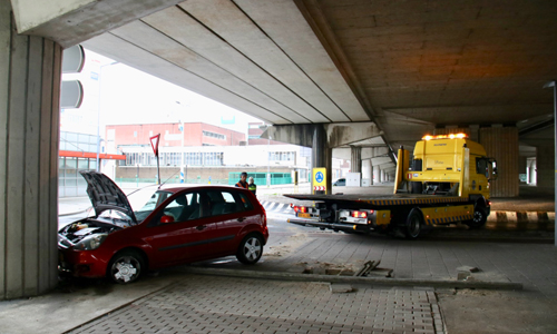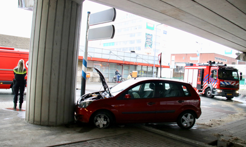 Rotterdam – Een automobilist is zondagmiddag met zijn auto tegen de pijler van de A20 gereden nadat hij de macht over het stuur was kwijtgeraakt. Dit gebeurde op de Giessenweg in Rotterdam. Vermoedelijk heeft de bestuurder op de rotonde de middenberm geraakt en is vervolgens tegen de pijler tot stilstand gekomen. Brandweer van Schiedam en ambulance kwamen met spoed ter plaatse. De brandweer heeft het voertuig veilig gesteld. De auto lekte behoorlijk wat vloeistof hier heeft de brandweer absorbeerde korrels op gestrooid. Het slachtoffer hoefde uiteindelijk niet mee naar het ziekenhuis.