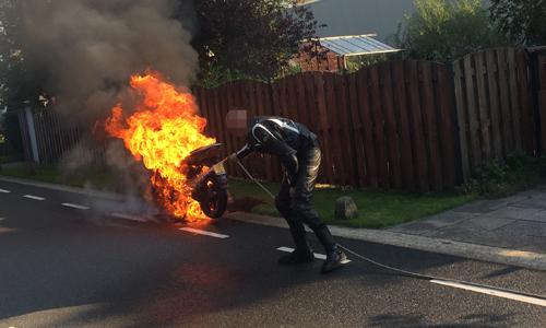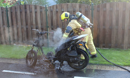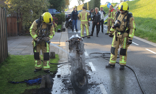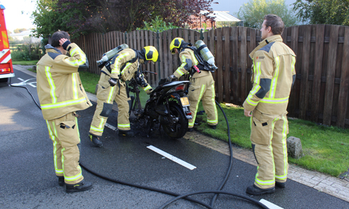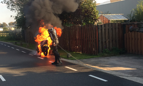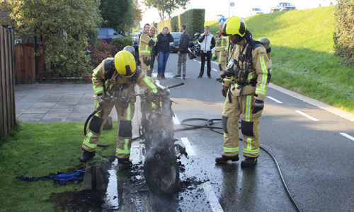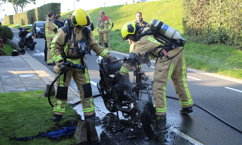 ‘s-Gravenzande – De brandweer is zaterdagavond 23 september gealarmeerd voor een voertuigbrand op de Maasdijk in ‘s-Gravenzande. Een jongen reed op zijn scooter richting Maassluis toen er kortsluiting ontstond in zijn stuur. Het duurde niet lang voordat de gehele scooter in brand stond. Een toevallig passerende agent in vrije tijd aarzelde geen moment een heeft bij een woning om een tuinslang gevraagd en een eerste bluspoging gedaan. De brandweer heeft de scooter nageblust.