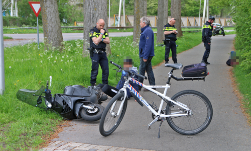 Delft – Een flinke aanrijding dinsdagmiddag 24 april op het fietspad naast het Westeinde in Delft. Twee scooterrijders knalde hier op elkaar. Hierna kwamen ze beide ten val. De twee bestuurders moesten uitwijken voor overstekende kinderen, waarna ze op elkaar klapte. Een bestuurder is nagekeken in de ambulance, maar beide hoeven niet vervoerd te worden.
