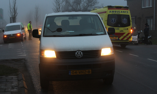 Zevenhuizen – Dinsdagmiddag heeft er op de Noordelijke Dwarsweg in kruising met de Knibbelweg in Zevenhuizen een aanrijding plaatsgevonden tussen een scooter en een bestelbus. De gealarmeerde ambulancedienst uit Haaglanden heeft het slachtoffer onderzocht en uiteindelijk met A2 (Zonder Spoed) vervoerd naar het ziekenhuis. De verkeers ongevallen analyse (VOA) heeft geruime tijd onderzoek verricht naar de toedracht van het ongeval. De bestelbus mocht na het onderzoek met de bestuurder ze eigen weg vervolgen, de scooter is opgehaald door de politie kraan voor nader onderzoek. Het overige verkeer ondervond flinke hinder van dit incident.