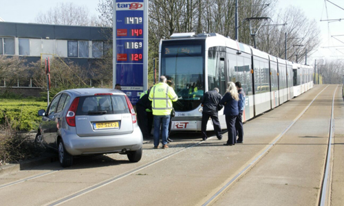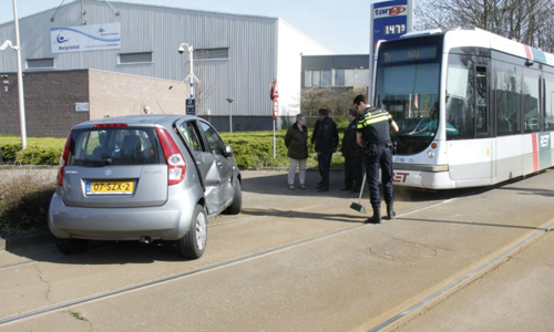 24 maart Tramverkeer enige tijd gestremd door aanrijding tram vs auto Nieuwe Damlaan Schiedam