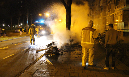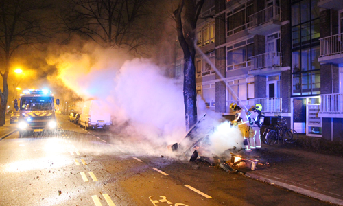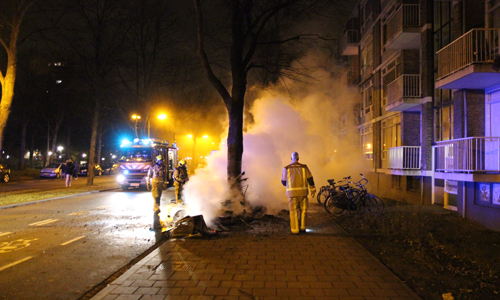 Den Haag – In de nacht van donderdag op vrijdag werden de bewoners van een portiek aan de Melis Stokelaan in Den Haag opgeschrikt door een flinke vlammenzee voor de deur. Op straat stond een flinke berg meubilair in brand. De brandweer kwam met spoed ter plaatse. Door het snelle optreden van de brandweer konden de meters hoge vlammen snel worden gedoofd. Door de brand ontstond er een flinke rookontwikkeling. De brandweer controleerde bij verschillende bewoners of er geen rook in de woningen was gekomen. Door de vlammenzee werd ook een boom flink beschadigd. De politie gaat uit van brandstichting.