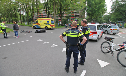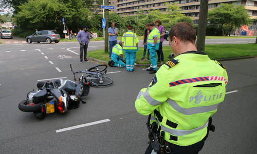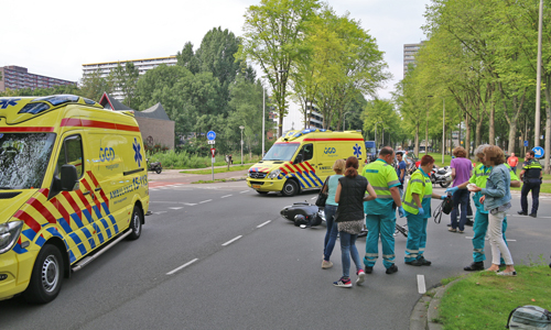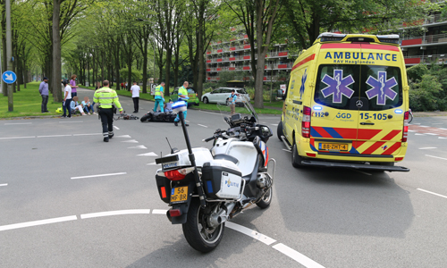Delft – Vrijdagmiddag heeft er op de kruising van de Voorhofdreef met de Menno ter Braaklaan een aanrijding plaatsgevonden tussen een motor en een fietsster. De fietsster die vanaf de Menno ter Braaklaan wilde oversteken naar het Bosboom-Toussaintplein werd halverwege aangereden door de motorrijder die richting de Kruithuisweg reed. Zowel de opzittende van de motor als de fietsster raakte gewond door de aanrijding. Omdat er twee slachtoffers waren zijn er twee ambulance’s ter plaatse gekomen. De kruising van de Voorhofdreef met de Menno ter Braaklaan is tijdens het ongeval afgesloten geweest. De motorrijder is met ondersteuning van het ambulancepersoneel op de brancard gelegd.