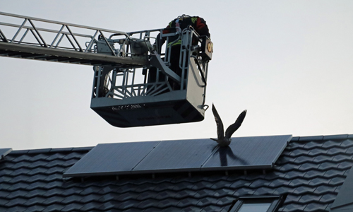Ter plaatse was een vogel door een nog onbekende reden vast te komen zitten in een zonnepaneel. Deze lag op een nieuwe woning aan het adres in de nieuwbouwwijk de “Middenwillens”.