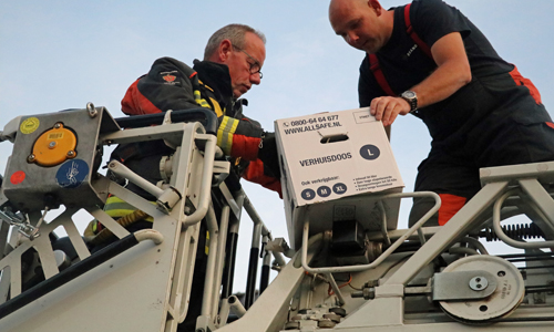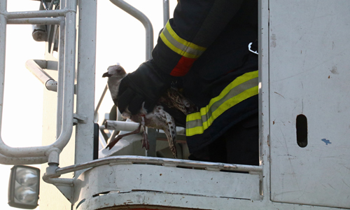 Echter na voorzichtig te werk te gaan lukte het na een aantal minuten het dier zonder verdere verwondingen toch te bevrijden. Waarna men weer na beneden kon gaan en de vogel tijdelijk in een doos stopte om hem/haar mee te nemen naar een dierenarts.