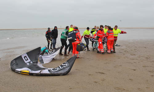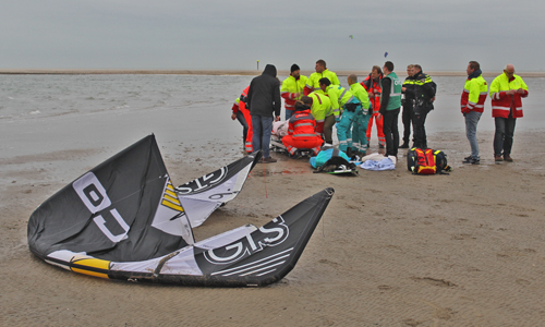 De kitesurfer is tijdens het surfen hard ten val gekomen op het water. Hierna is de kitesurfer volgens getuigen 1 minuut onder water gebleven. De reddingsbrigade heeft met de strandambulance het slachtoffer naar de ambulance die op de verharde weg stond gebracht. De arts van het MMT is meegereden naar de ambulance om het slachtoffer te stabiliseren. De traumahelikopter is niet ver van het incident geland.