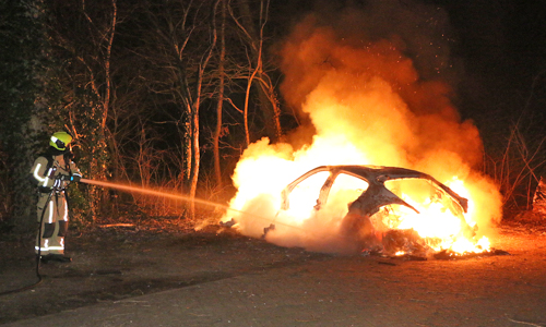 Delft – In de nacht van Zaterdag op Zondag 25 februari is de brandweer van Delft rond 03:30 gealarmeerd voor een autobrand in recreatiegebied Delftse Hout. Ter plaatse bleek er een peperdure Porsche op een parkeerplaats al enige tijd in brand te staan. De brandweer is direct gestart met bluswerkzaamheden, echter kon niet worden voorkomen dat het voertuig volledig uitbrandde. Vermoedelijk is de brand pas laat opgemerkt. De politie start een onderzoek naar de oorzaak.