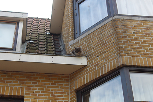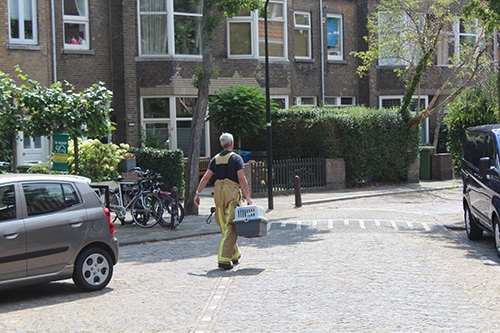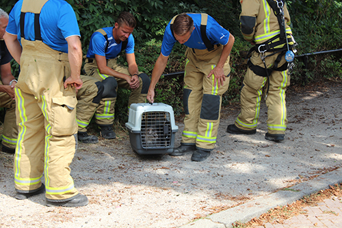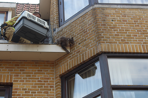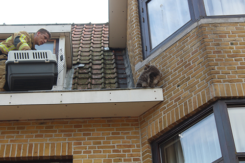 Rijswijk – Woensdagmiddag hield een kat de brandweer druk bezig op de Broekslootkade in Rijswijk. Een buurtbewoner zag de kat levenloos liggen in de dakgoot en schakelde de brandweer in. Brandweer Rijswijk kwam ter plaatse en concludeerde dat de kat niet levenloos was. Om de kat veilig te kunnen redden moest de hoogwerker van kazerne Laak komen. Toen de hoogwerker eenmaal ter plaatse was, begon de reddingsoperatie. Toen de hoogwerker richting de kat ging, hield de kat het voor gezien en ging ervandoor naar de andere kant van het woonblok. De brandweer moest uiteindelijk met het gebruik van harnassen lopend door de dakgoot de kat redden. Dit lukte, waarna de kat in een vervoersbox naar beneden is gebracht. Het was niet bekend van wie de kat was, daarop werd ook de dierenambulance ingeschakeld. Na een kortdurende buurtonderzoek door de brandweer kwam de eigenaar van de kat aangelopen. Na een bedankje mocht hij met zijn kat weer naar huis. De brandweer heeft hierop de dierenambulance afgebeld. De kat was volgens de eigenaar twee dagen geleden op miraculeuze manier ervandoor gegaan.