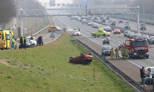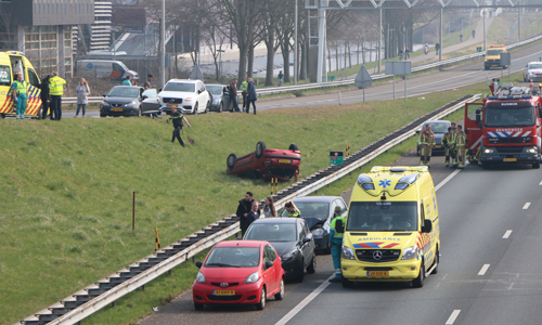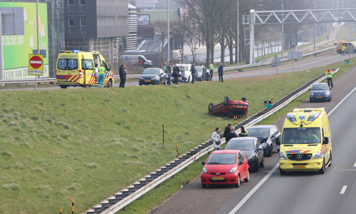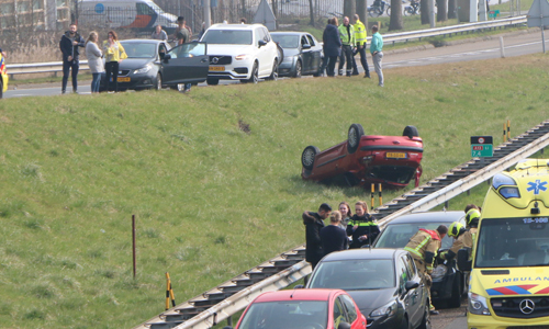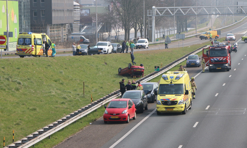 25 maart Auto slaat over de kop na ongeval A13 Delft