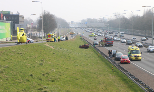 Delft – Op de A13 ter hoogte van de afrit Delft Noord heeft zondagmiddag 25 maart een ongeval plaatsgevonden tussen een aantal auto’s. Eén van de voertuigen sloeg daarbij over de kop en kwam tot stilstand in de berm. Diverse hulpdiensten werden gealarmeerd waaronder een traumahelikopter uit Rotterdam, deze was geland op de afrit.