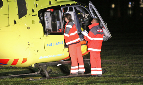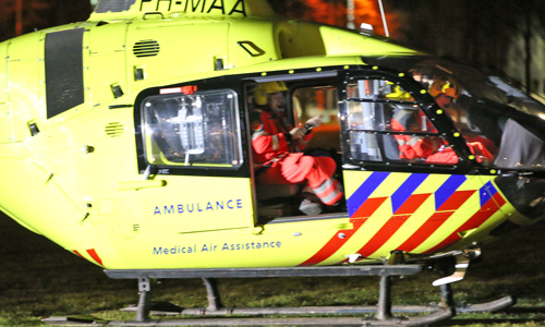 Voorburg – Het MMT uit Amsterdam is zaterdagavond 25 maart gealarmeerd voor een medische noodsituatie in een woning aan de Von Geusaustraat in Voorburg. Een man was onwel geworden en een ambulance kwam in eerste instantie ter plaatse. Gedurende de behandeling verslechterde de conditie van de man en zijn een tweede ambulance, politie-eenheden en het MMT opgeroepen. De brandweer heeft met behulp van een hoogwerker de patiënt naar beneden gehaald. De man is uiteindelijk met spoed naar het HMC ziekenhuis gebracht. De arts van het MMT is meegereden. De traumahelikopter, die op het Malieveld stond heeft daar gewacht op de arts van het MMT. Deze is later door een ambulance naar het Malieveld gereden. Toen de arts weer aanwezig was op de helikopter is deze weer vetrokken naar hun thuisbasis.
