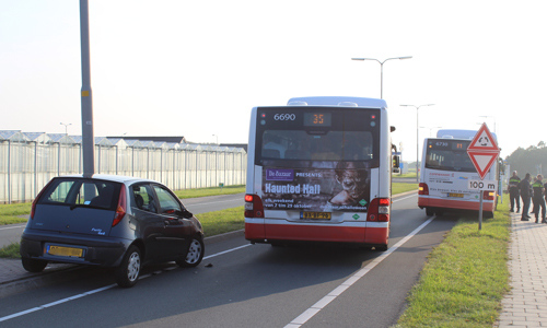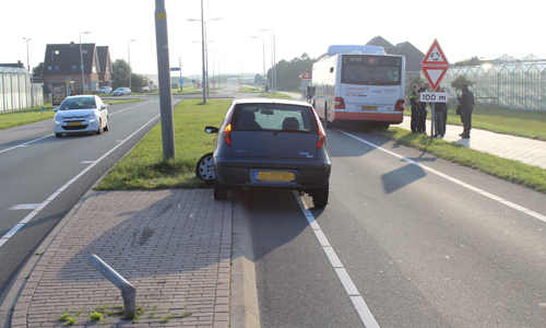 ‘s-Gravenzande – Maandagmiddag heeft er een ongeluk plaatsgevonden op de Monsterseweg in ‘s-Gravenzande. Een automobilist zag te laat dat de lijnbus voor hem stil stond, waarna hij uitweek en een paal met een verkeersbord uit de grond reed. Ook is de bus van Connexxion geraakt. Een toevallig passerende agent heeft geassisteerd met de schadeformulieren. De auto is geborgen door Vreugdenhil en de bus kon zijn weg vervolgen. De bestuurder van de auto is aangehouden. Onbekend is waarom de jongen mee moest naar het bureau.