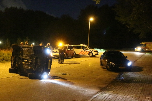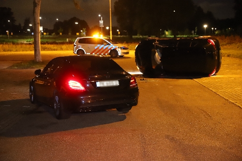 Rijswijk – Een automobilist is in de nacht van maandag op dinsdag met zijn auto op z’n kant terecht gekomen na een aanrijding. De aanrijding was met een andere personenauto. Bij de aanrijding raakte een persoon gewond. Het slachtoffer is in de ambulance behandeld aan zijn verwondingen. Hij hoefde niet mee naar het ziekenhuis. Getuigen vertellen dat het er hard aan toe ging. Een berger heeft de Mercedes geborgen. Een politieberger komt de andere auto ophalen.