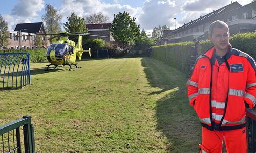 Gouda – Rond 18:00 uur werden verschillende hulpdiensten gealarmeerd, waaronder het MMT (Mobiel Medische Team) uit Rotterdam voor een incident aan de Snoystraat in Gouda. Ter plaatse bleek er volgens omstanders een kind heet water over zich heen te hebben gehad. De traumahelikopter is geland om een voetbalveldje aan de Bockenbergstraat, waarna de arts(en) naar de woning werden begeleid door de politie om aldaar medische bijstand te verlenen aan het aanwezige ambulancepersoneel. Nadat het slachtoffertje was gestabiliseerd werd deze vervolgens meegenomen door de ambulancedienst. De traumahelikopter trok veel bekijks.