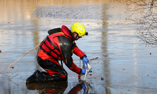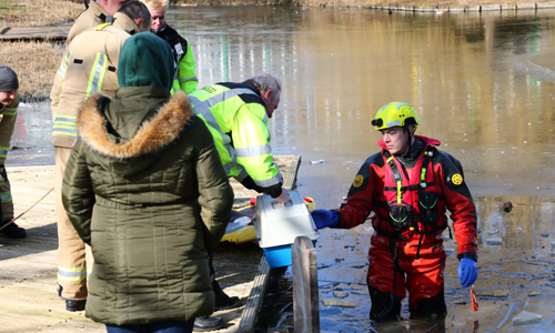 Rotterdam – De brandweer heeft maandagmiddag tijdens een reddingsactie van een vogel aan de Abtsweg geconstateerd dat het natuurijs nog niet dik genoeg is om op te schaatsen. Tijdens de redding kon het dunne laagje ijs de brandweerman nog niet houden. Gelukkig kon de vogel wel gered worden van het visdraad waar hij in vastzat. De dierenambulance heeft het beestje meegenomen.