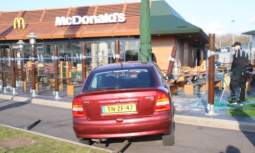 26 maart Auto rijdt terras McDonalds op Driemanssteeweg Rotterdam