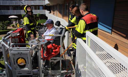 ‘s-Gravenzande – Vrijdagmiddag omstreeks drie uur werd de brandweer van ‘s-Gravenzande gealarmeerd voor een liftopsluiting in een appartementencomplex aan de Gasthuislaan. Aldaar bleek een man in een elektrische rolstoel vast te zitten in de lift. De man woont op de derde verdieping maar de lift liep vast op de eerste etage door een oliedruk probleem. De brandweer heeft de man bevrijd uit de lift waarna het volgende probleem zich voor deed. De lift die kapot was, is de enige lift in het complex wat bewoond word door onder andere 14 rolstoelgebruikers. De brandweer heeft hierop de hoogwerker van kazerne Naaldwijk ter plaatse laten komen. Met behulp van de hoogwerker is de man van de eerste naar de derde verdieping gebracht. Een vrouw die binnenkort in het complex komt wonen en op bezoek was is van de derde verdieping naar de begaande grond gebracht. Een man in een rolstoel, die vandaag voor het eerst dit jaar buiten kwam, bleef bespaard voor een rit in de hoogwerker door een spoedreparatie van een monteur. Bewoners van het complex klagen over de lift, die het wel vaker niet doet.